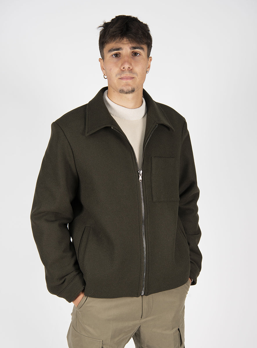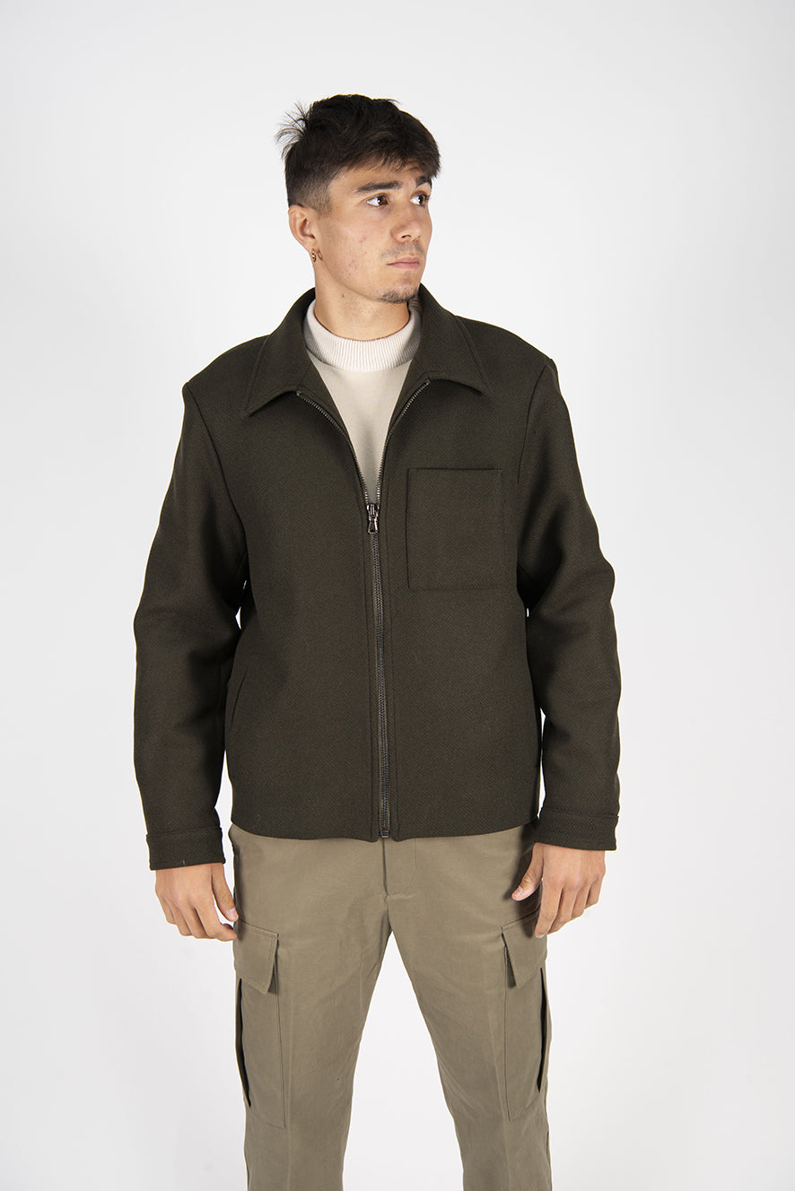 giubbotto in lana con collo camicia