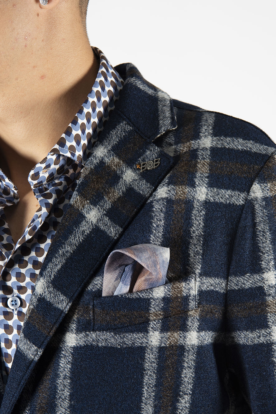 vestibilta' slim,fantasia quadro colore blu riga panna/marrone