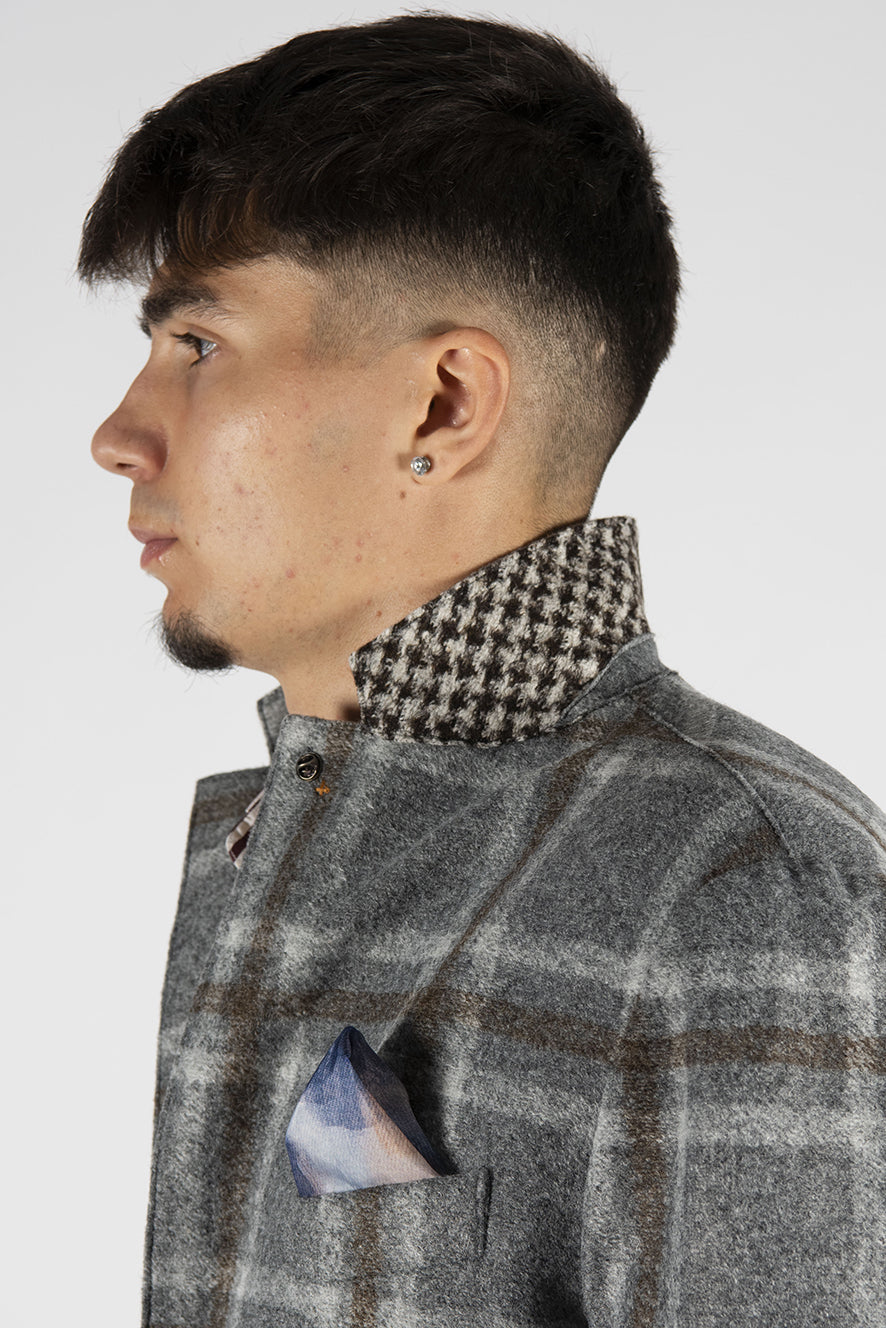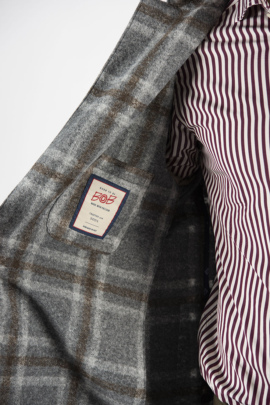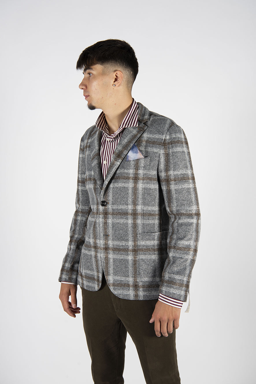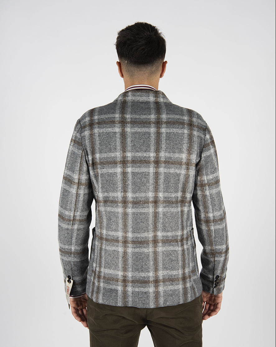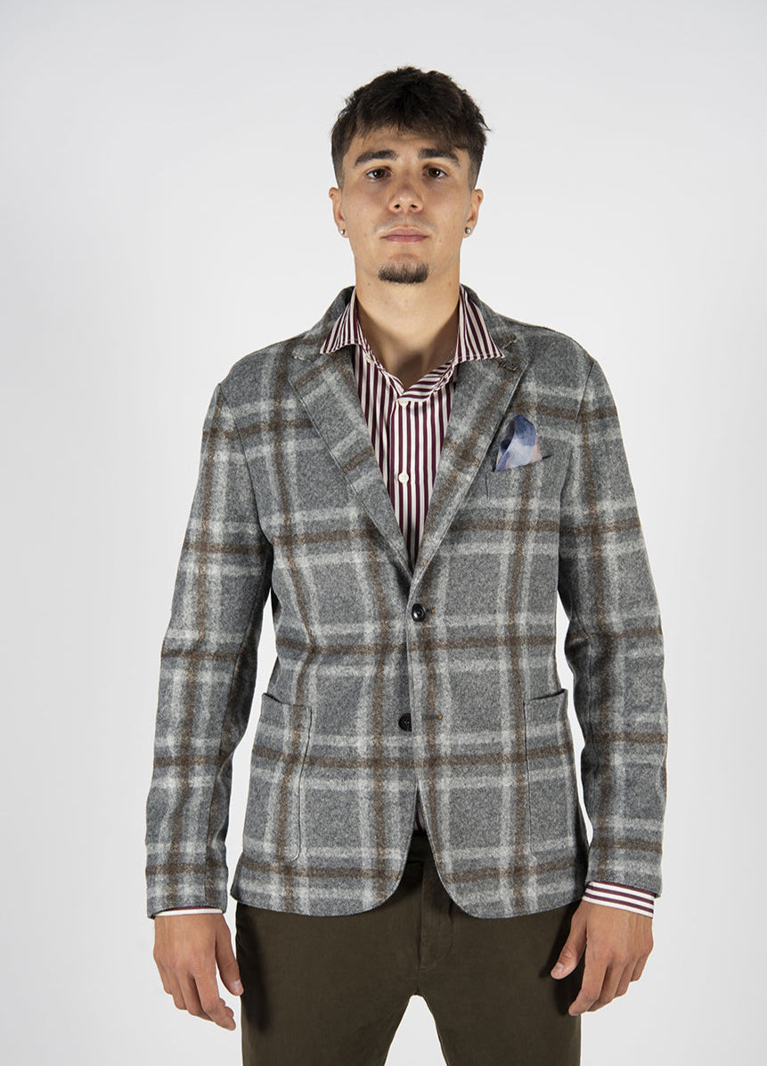 vestibilta' slim,fantasia quadro colore grigio riga panna/marrone