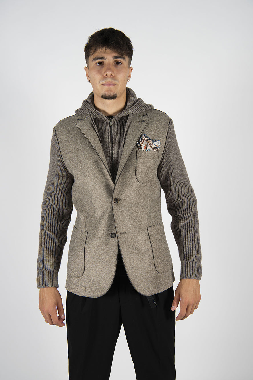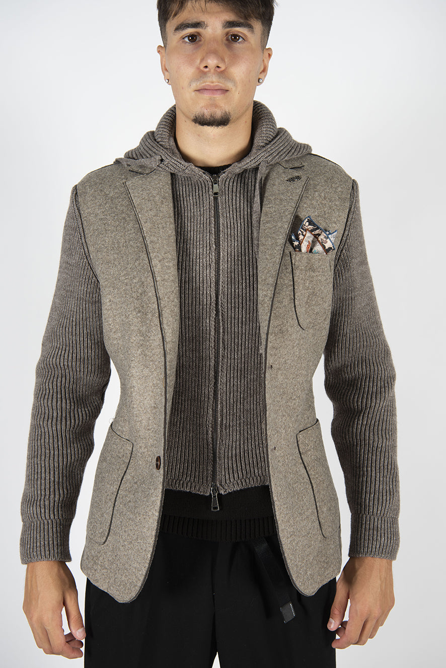 davantino con cappuccio,sempre in maglia,completamente staccabile