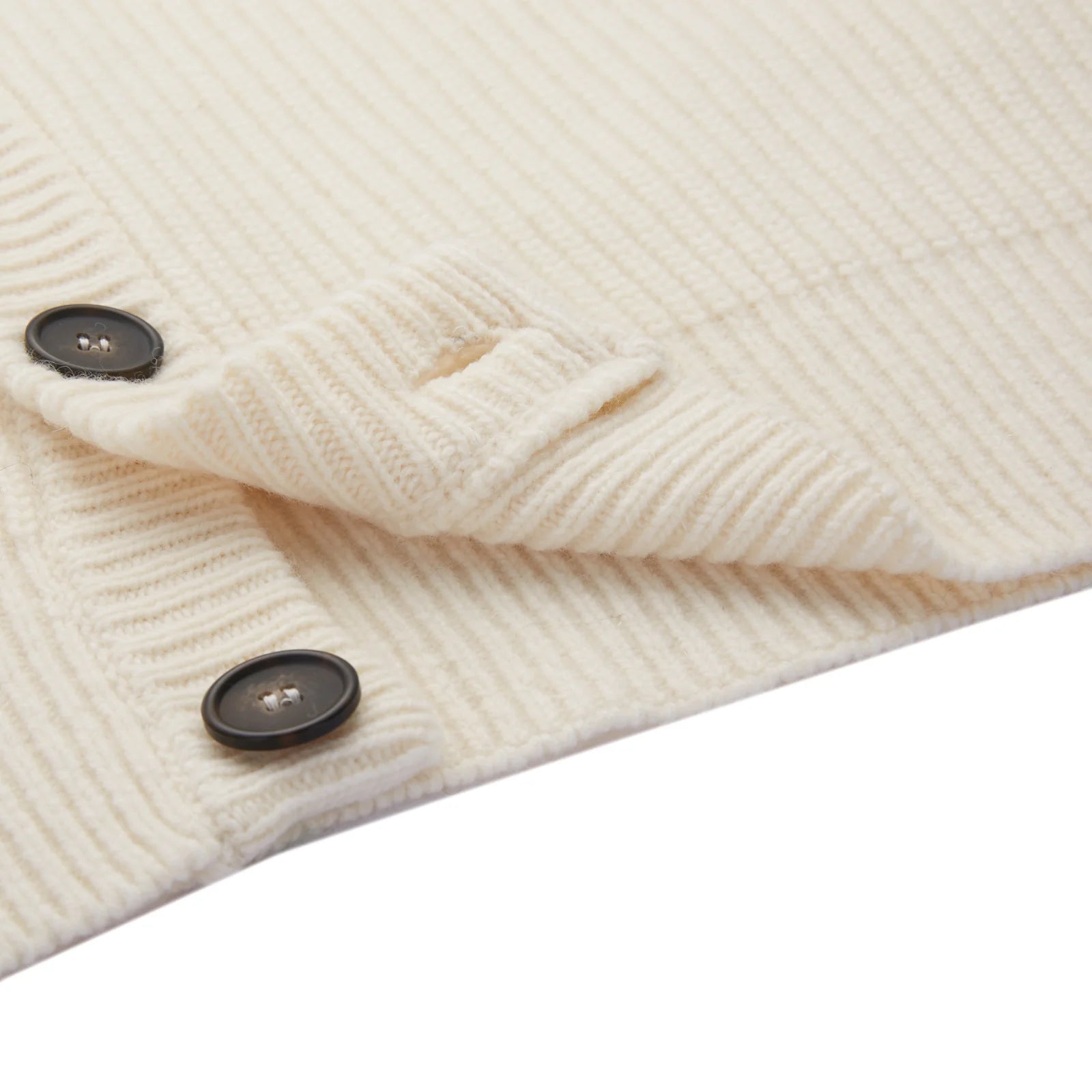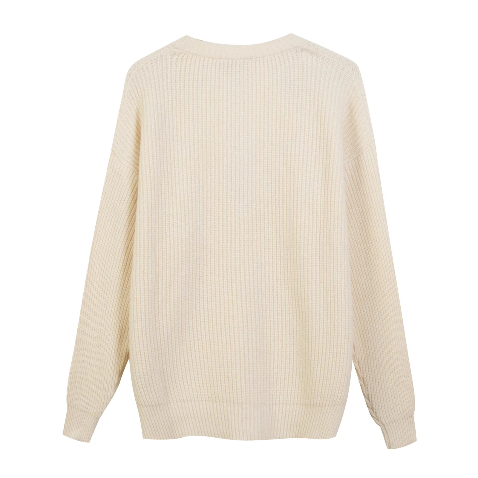 La struttura regolare della maglia inglese dona spessore e movimento al capo, esaltando la qualità del filato e la pulizia del design.