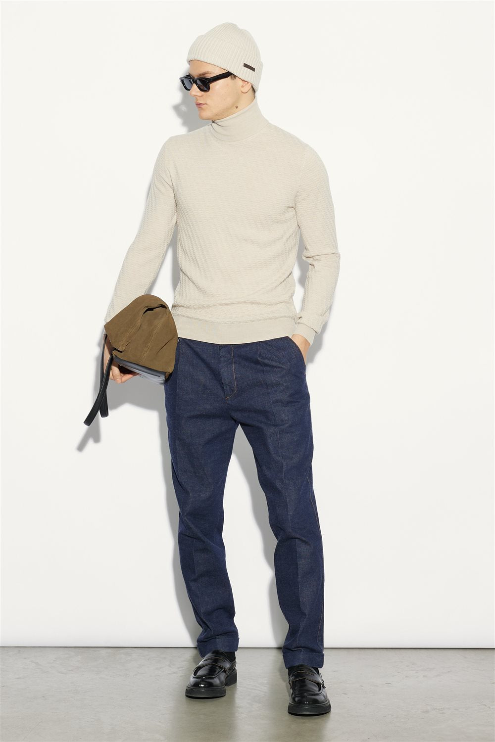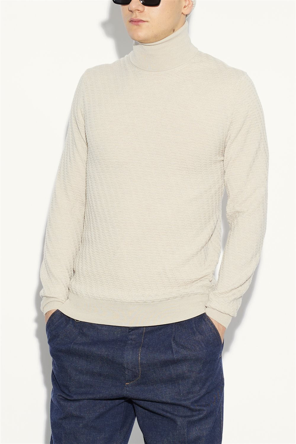 Maglia dolcevita, caratterizzato da lavorazione punto diagonale. Capo realizzato con filato 100% lana merinos extrafine, che offre un'eccellente morbidezza e calore.