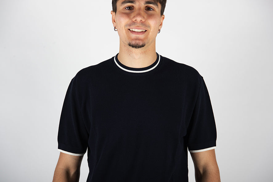 • Collo e maniche a contrasto