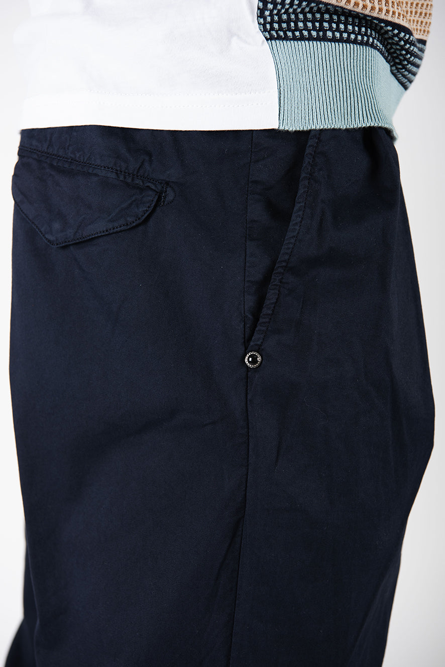 vita elasticizzata,cintura in grosgrain regolabile con fibbia sul davanti, tasche laterali e tasche sul retro.