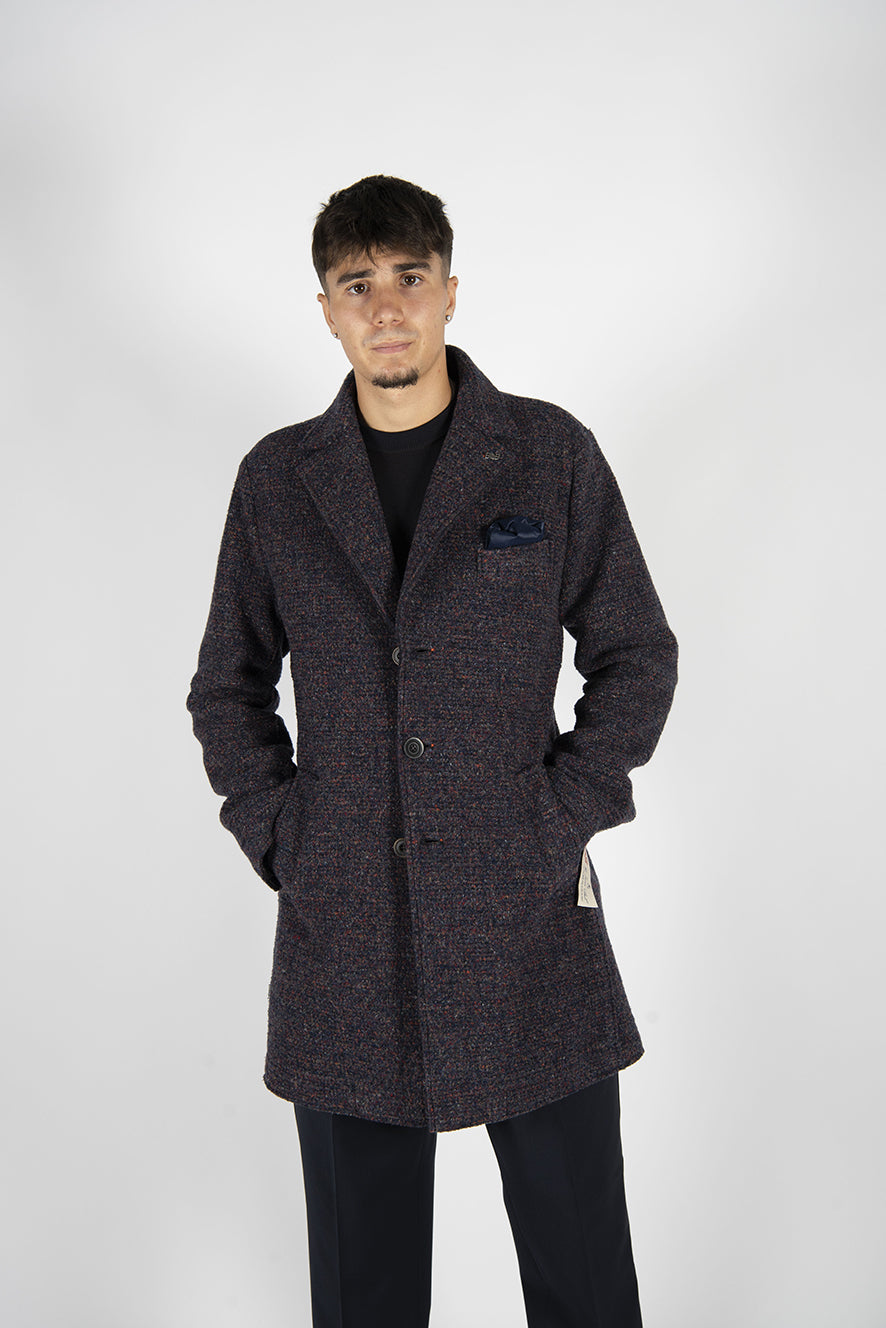 cappotto monopetto in bouclet accoppiato in neoprene.