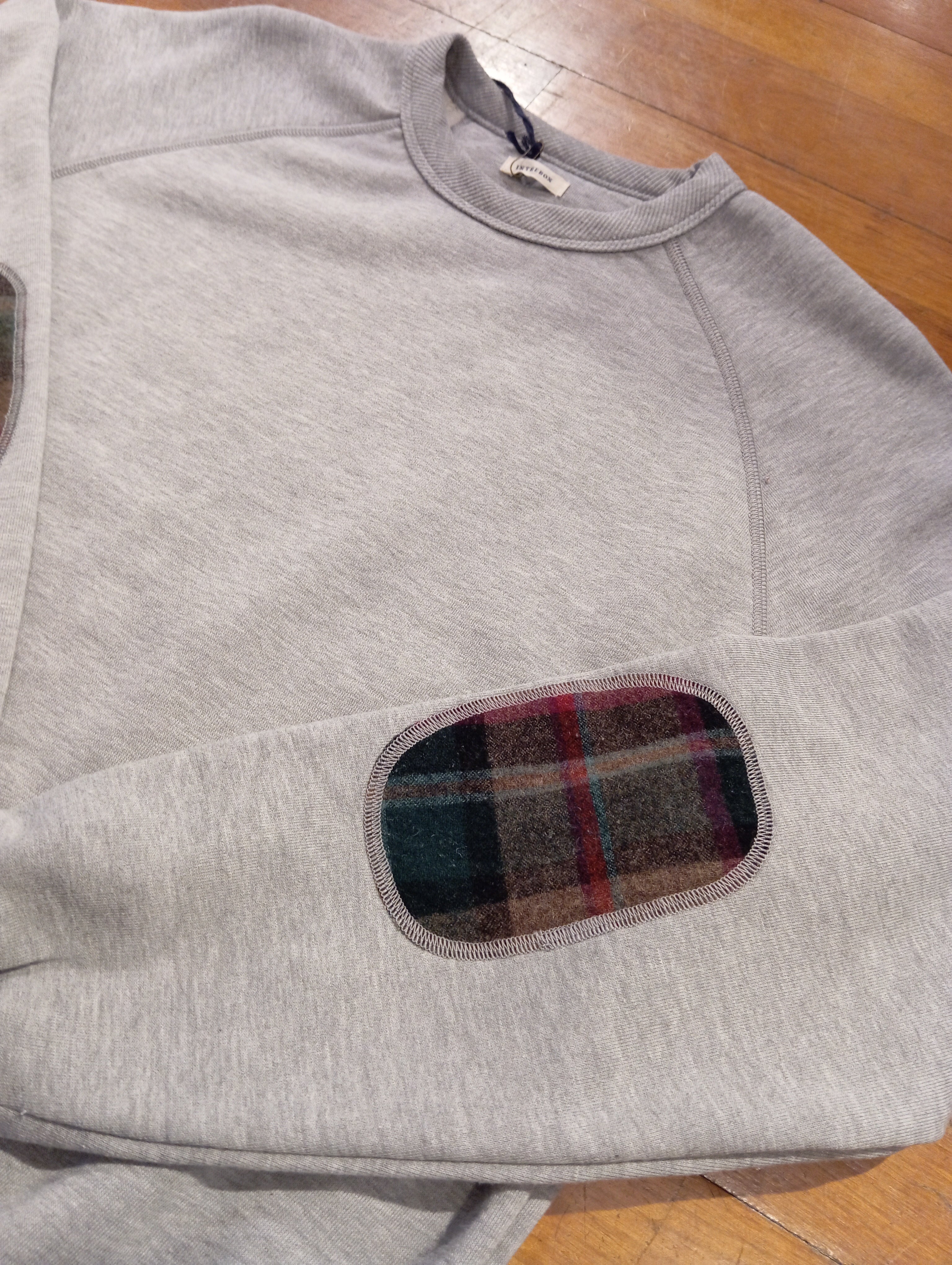 felpa girocollo in cotone con toppe in tartan