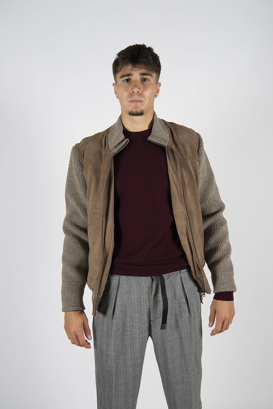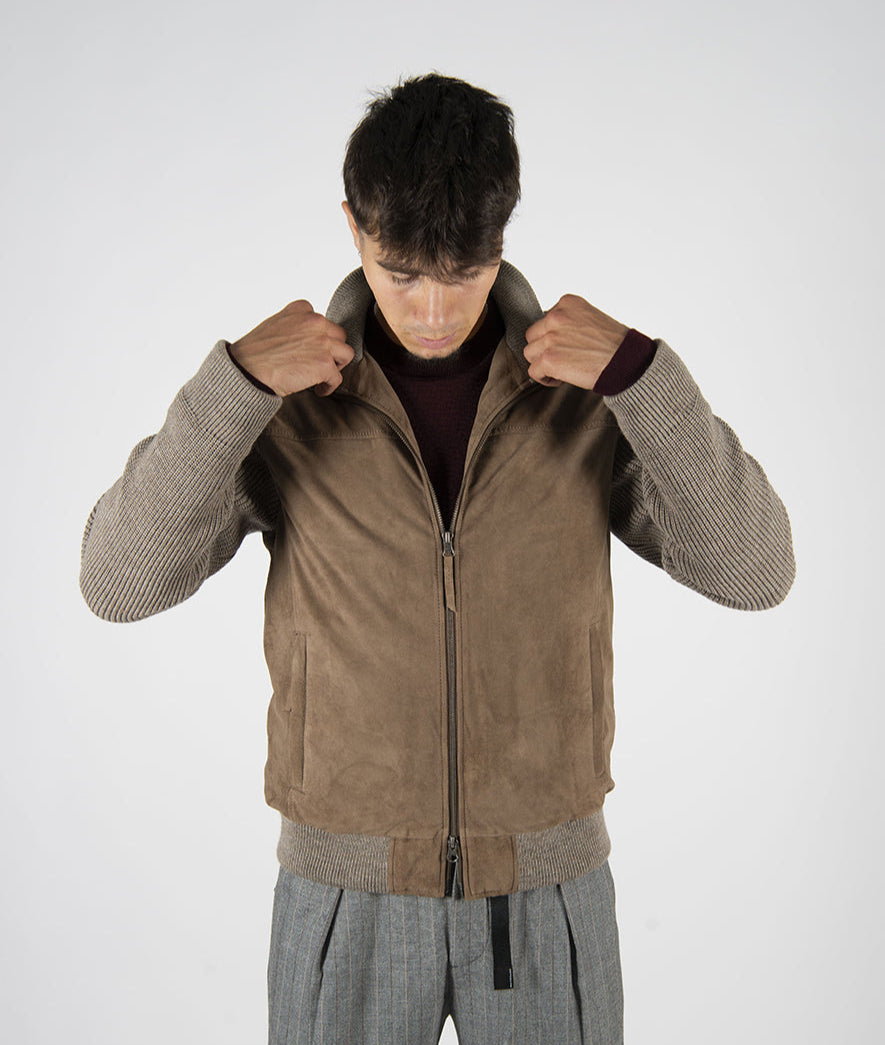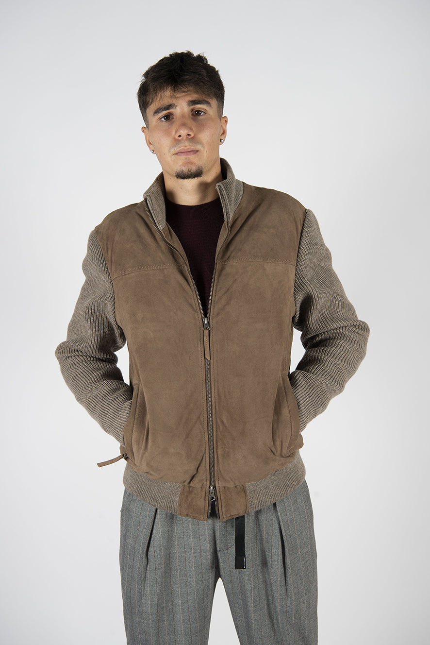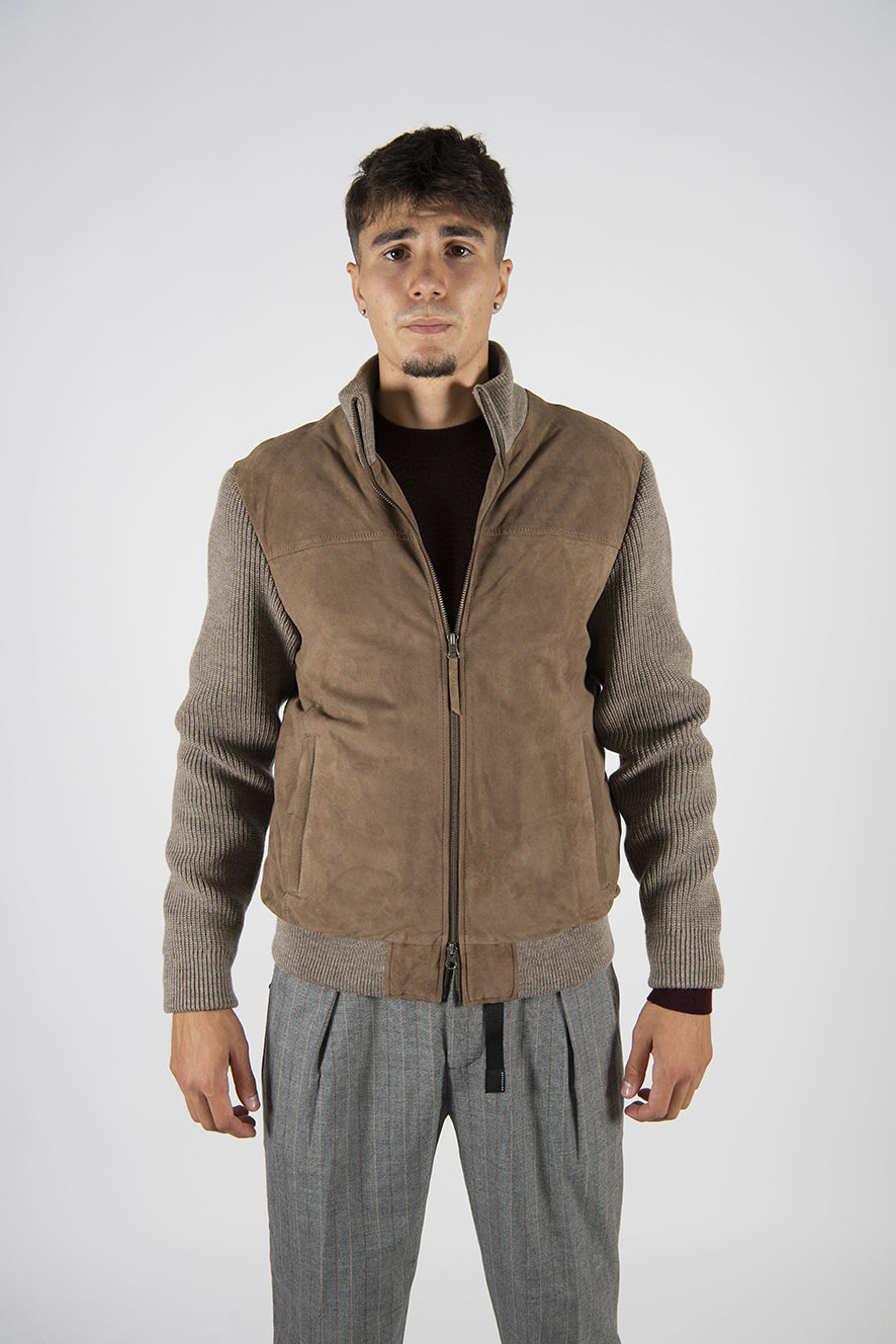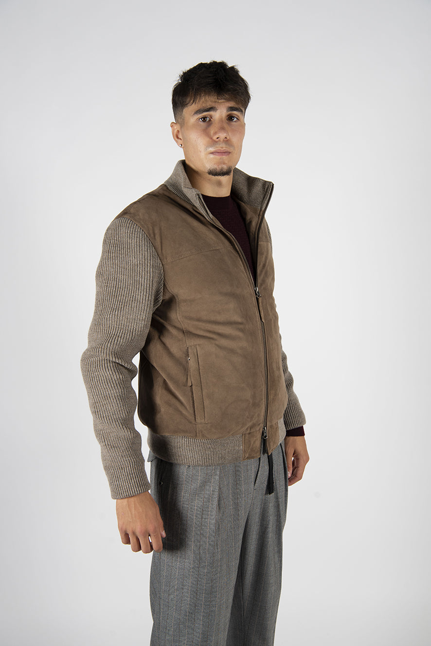 giubbino in pelle scamosciata modello "bomber" con imbottitura in ovatta.