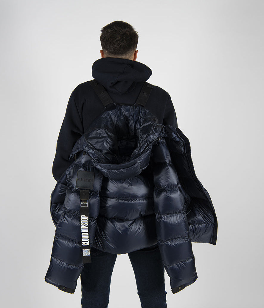 - Chiusura con zip e cappuccio imbottito con coulisse regolabile