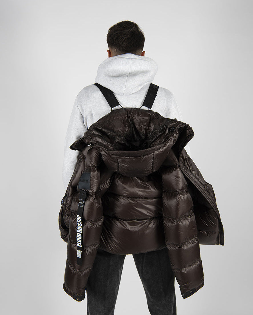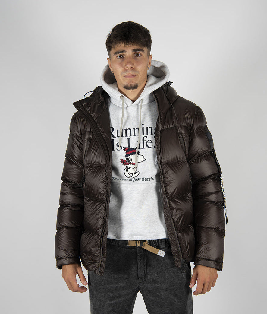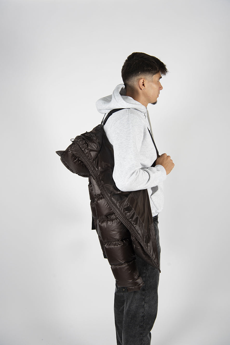 - Chiusura con zip e cappuccio imbottito con coulisse regolabile