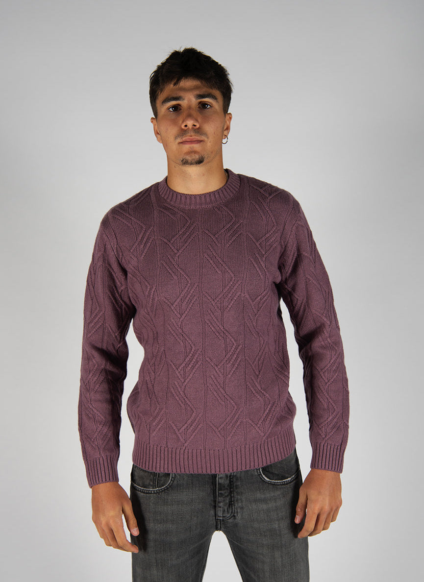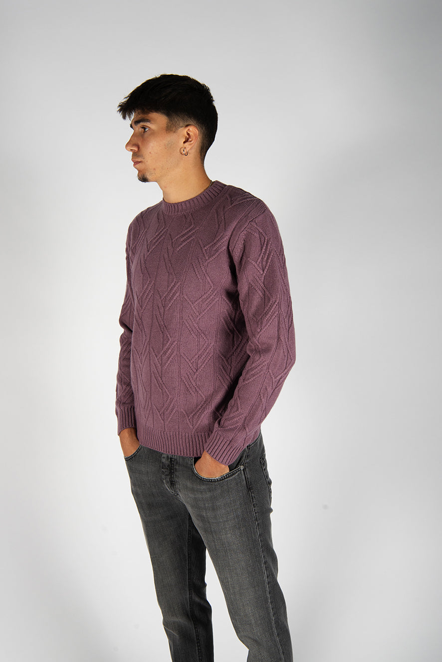 maglia girocollo in lana lavorazione a losanghe