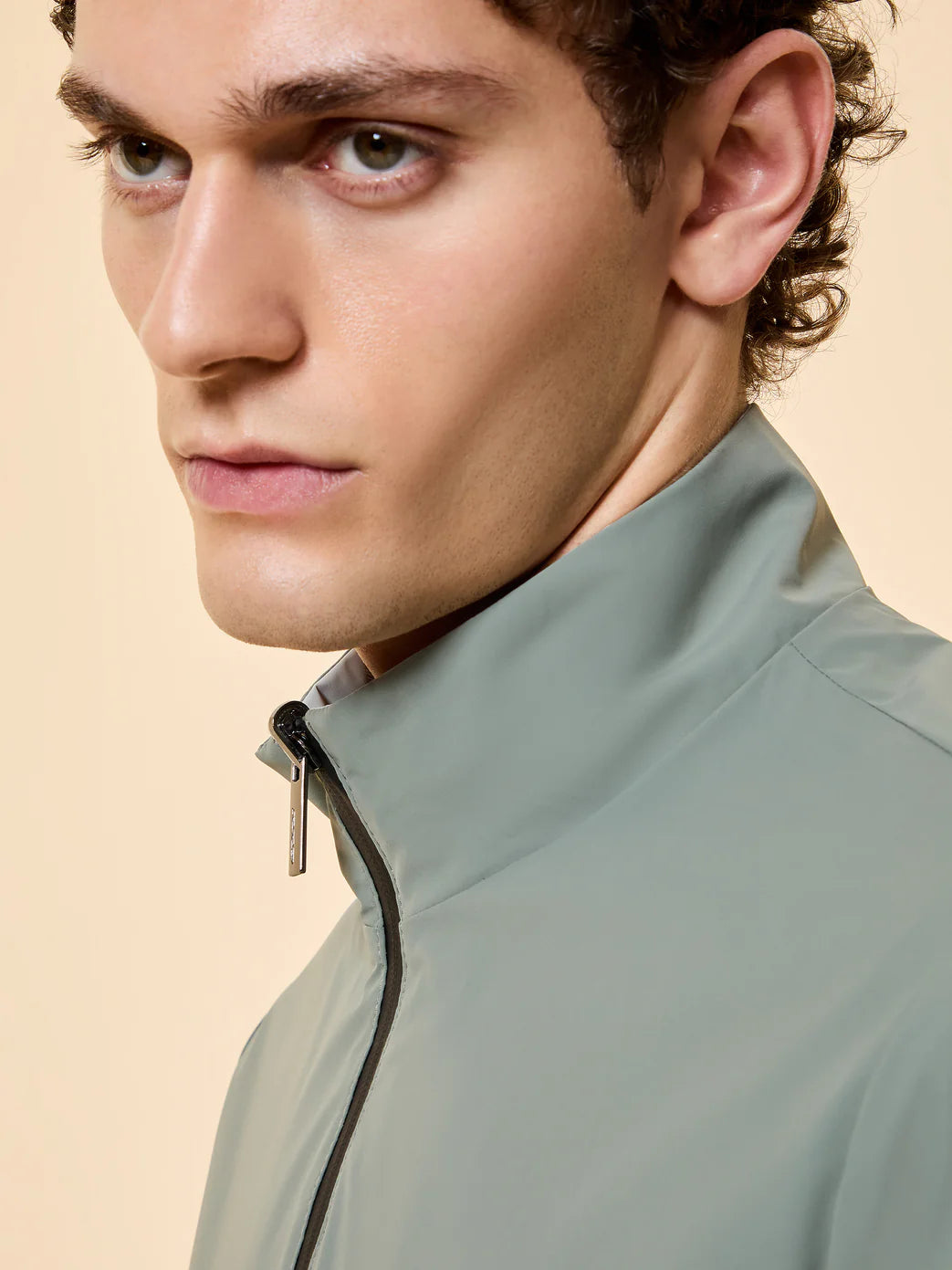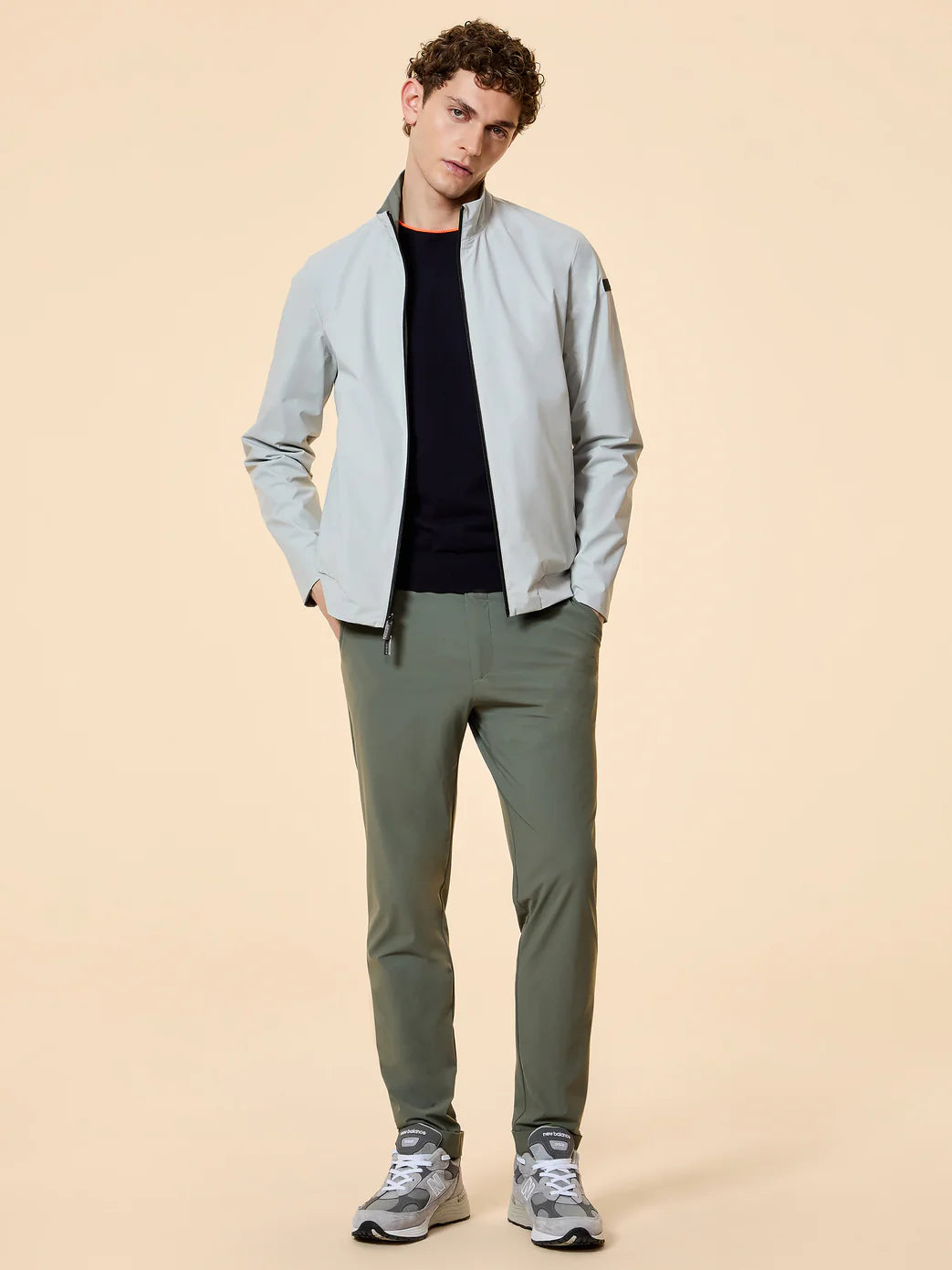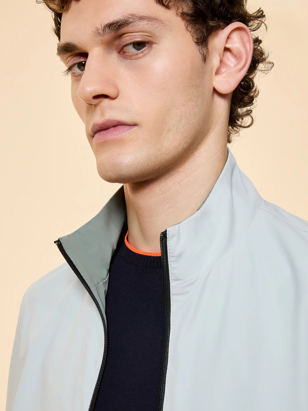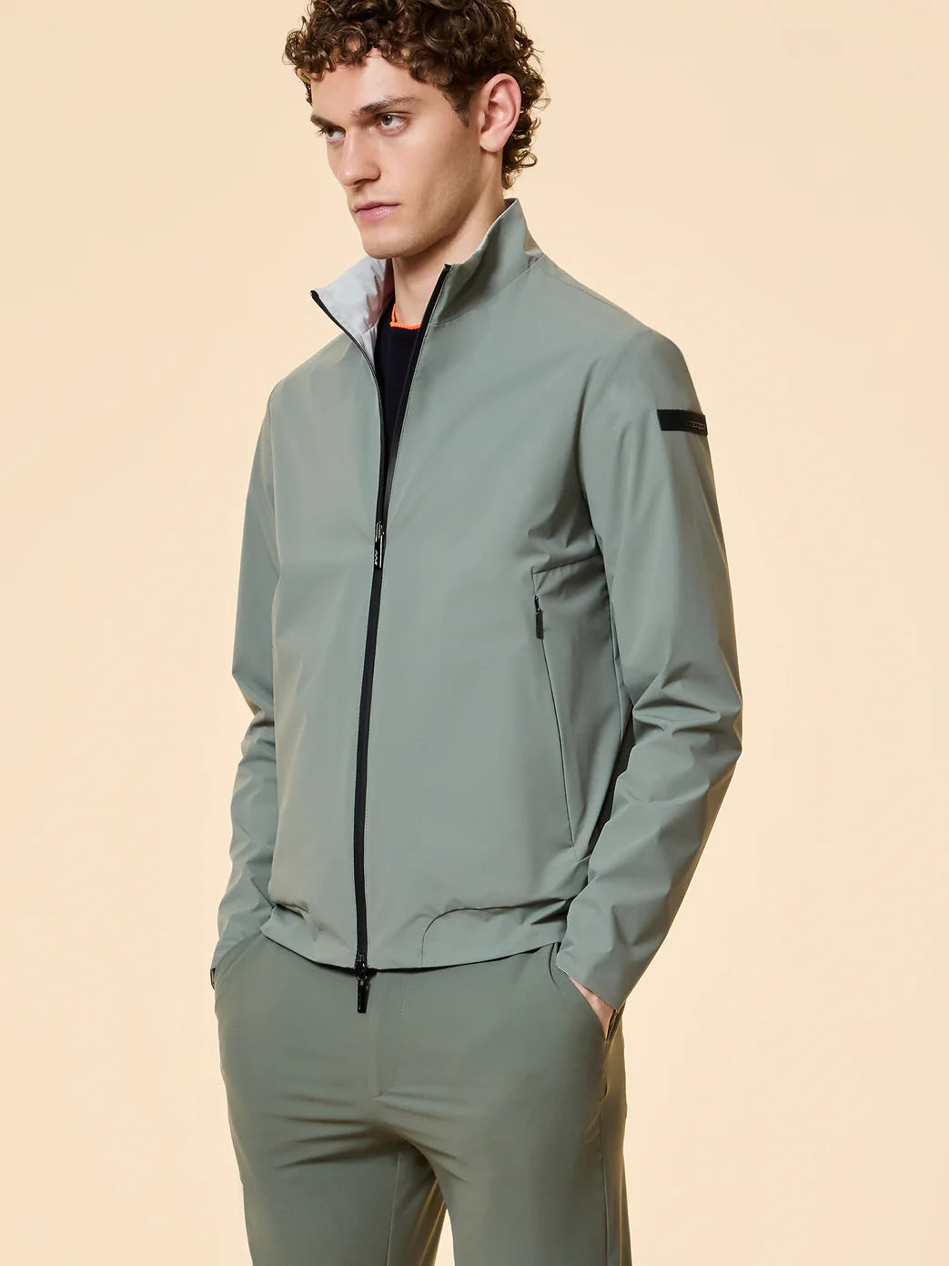 Un dialogo impeccabile tra innovazione hi-tech e design essenziale: questo bomber reversibile in tessuto stretch dal look opaco ha l’oceano nel suo DNA, attualizzato in chiave urban elegante e profondamente contemporanea. La costruzione leggera e traspirante avvolge il corpo con una naturalezza sofisticata. La zip gommata a doppio cursore, che corre a tutta altezza chiudendo il colletto verticale, disegna l’estetica nitida della giacca. Le tasche laterali con zip invisibili accentuano ulteriormente la purezza delle linee, mentre la reversibilità del capo ne amplia le possibilità di utilizzo. La nastratura arancio fluo sul fondo posteriore e il logo a microiniezione nero sulla manica sinistra siglano la creazione con dettagli emblematici, nell’elevare con naturalezza qualsiasi look casual metropolitano.