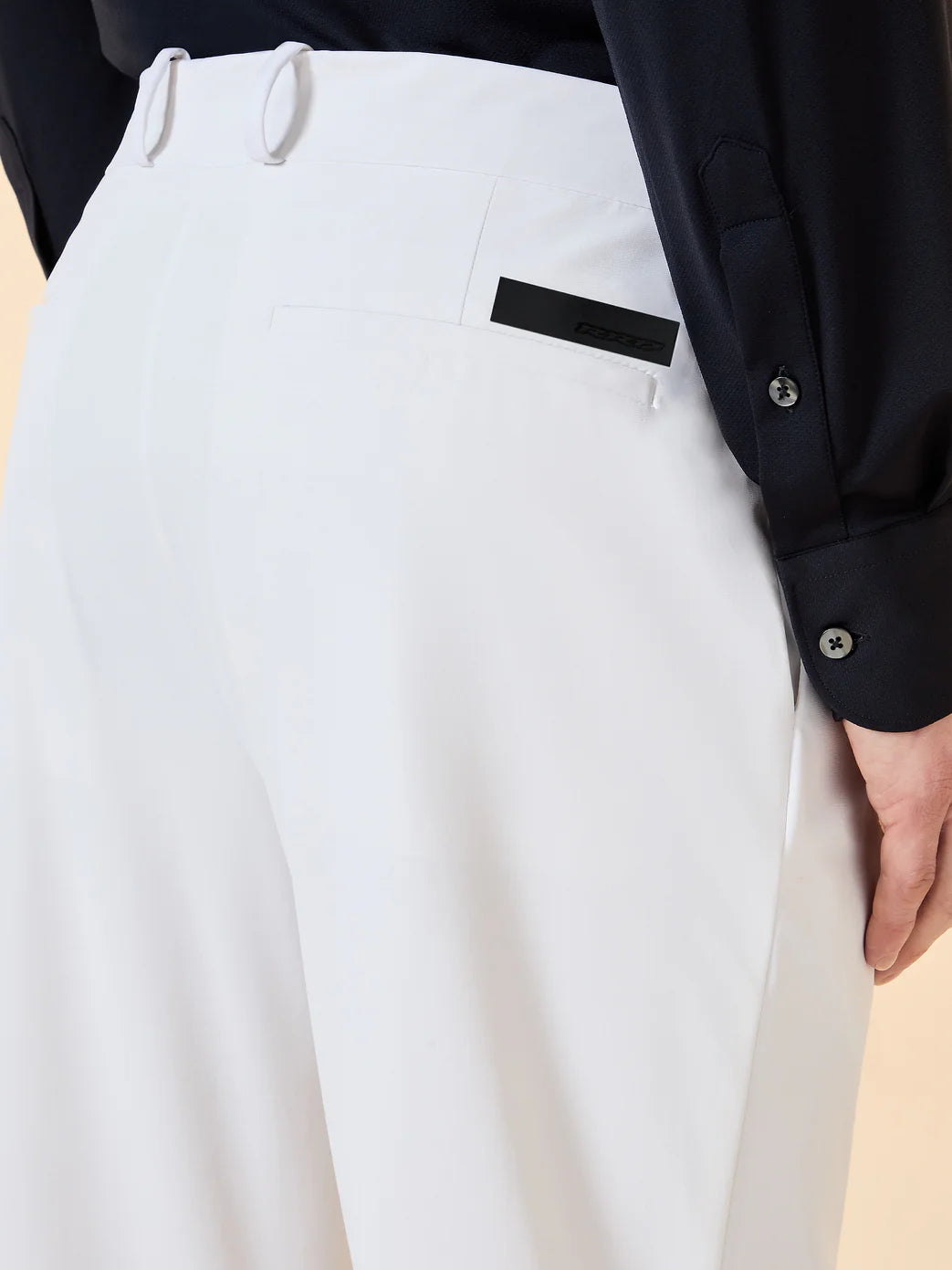 Un’espressione equilibrata di comfort, stile e versatilità: questo modello continuativo di grande successo non può mancare nel guardaroba maschile primaverile ed estivo. Realizzato nel nostro esclusivo tessuto stretch, fresco e traspirante, leggero e dalla mano liscia e morbida, il modello si distingue per l’aspetto super opaco che esalta la pulizia del taglio sartoriale. Il fit regolare è definito dalla vita a passanti, rifinita internamente dalla fascia stampata con il monogramma Razzle Dazzle tono su tono. La chiusura presenta un'elegante abbottonatura in corno con zip celata dalla pattina. Le tasche laterali alla francese dialogano con quelle posteriori a filetto, ravvivate dall'emblematico logo a microiniezione nero sul lato destro. Il risvolto alla caviglia è un tratto distintivo della sartorialità contemporanea. Le qualità antipiega e easy care rendono il modello ideale per l'uso quotidiano. Perfetti da abbinare a un blazer leggero, sempre in SURFLEX®, e a una camicia o T-shirt in Oxford, questi chino compongono con naturalezza un outfit smart casual distintivo.